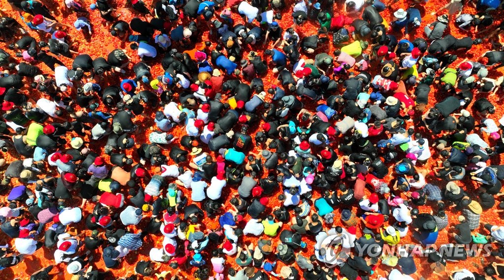 (화천=연합뉴스) 이상학 기자 = 강원 화천군의 대표 여름축제인 '토마토축제'가 8월 1일 사내면 사창리 문화마을 일대에서 개막해 나흘간 펼쳐진다.