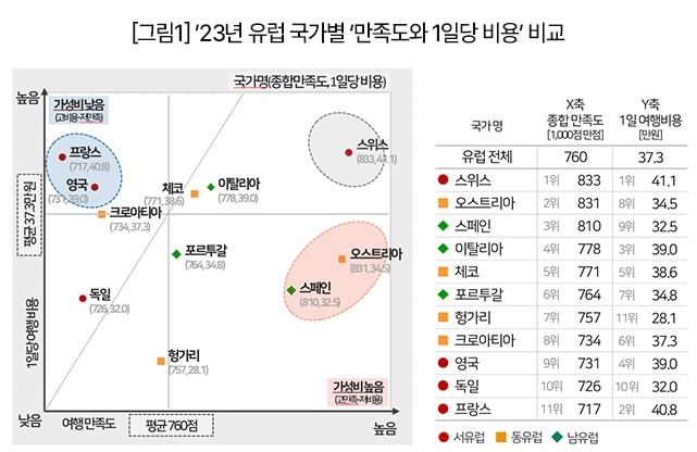 | ▲ 컨슈머인사이트의 만족도 조사. 프랑스가 비용 대비 만족도가 제일 떨어지는 것으로 나타났다. [컨슈머인사이트 제공] |