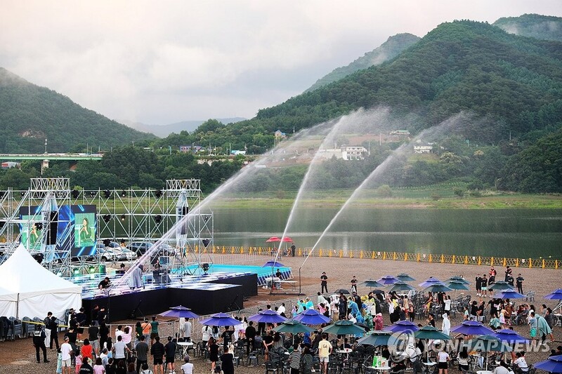 | ▲ 무더위 날리는 물대포와 신나는 음악 (인제=연합뉴스) 지난 6월 15일 강원 인제군 남면 빙어호 일원에서 열린 '2024 인제 캠프 레이크 페스티벌'에서 워터풀원더풀 행사가 펼쳐져 관광객들이 물을 맞으며 공연을 즐기고 있다. [인제군 제공. 재판매 및 DB 금지] |