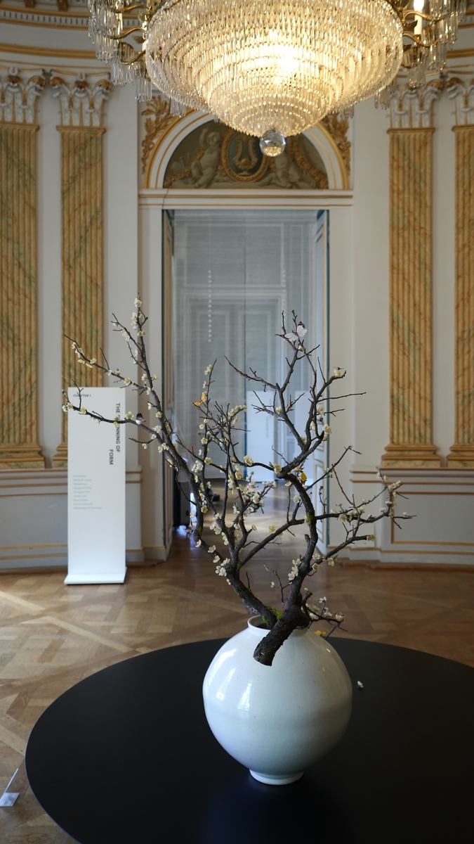 첫 장 '형태의 시작'에서는 한복과 달항아리, 궁중채화 등 전통의 원형을 담아낸다. 전시공간 중앙에는 달항아리와 함께 밀랍을 빚어 만든 궁중채화로 한국적 미의 조화로움을 표현했다. 전통한복인 답호와 당의, 궁중과 사대부 여성의 대표적인 예복인 원삼, 한복에 어울리는 전통 장신구, 화협옹주 묘 출토 화장품을 재현한 전통 화장품도 전시한다.