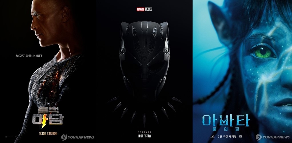 | ▲ (왼쪽부터) 영화 '블랙 아담', '블랙 팬서: 와칸다 포에버', '아바타: 물의 길' [각 배급사 제공. 재판매 및 DB 금지] |