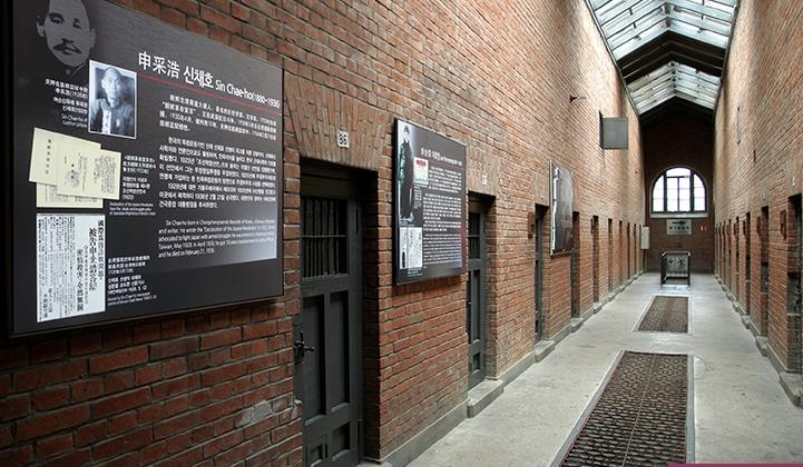 | ▲ 박물관으로 꾸며진 중국 뤼순감옥. 신채호·안중근·이회영 등 독립유공자들이 옥사한 곳이다. 맨 왼쪽에 신채호 선생 발자취를 소개한 패널이 걸려 있다. [단재신채호선생기념사업회 제공. 재판매 및 DB 금지] |