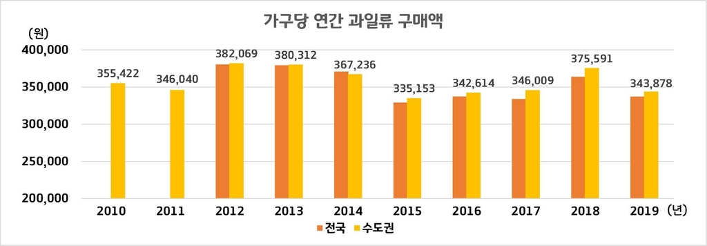 수도권 가구, 과일값으로 1년에 35만원 썼다
