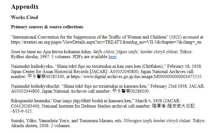 | ▲ 에이미 스탠리 교수 등 국제 역사학자 5명의 반박문의 1차 인용문헌 목록 [스탠리 교수 제공] |