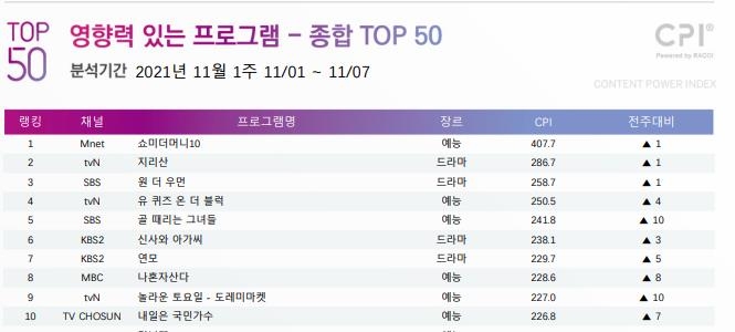 | ▲ 11월 첫째 주 CPI 리포트 [CJ ENM 제공. 재판매 및 DB 금지] |