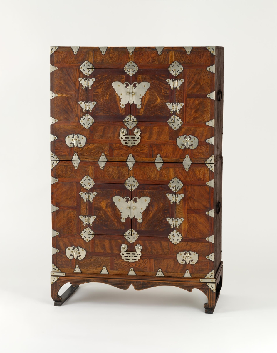 물품을 보관하던 목가구 위로 나비 문양의 장식을 더한 이층 농도 함께 선보인다.