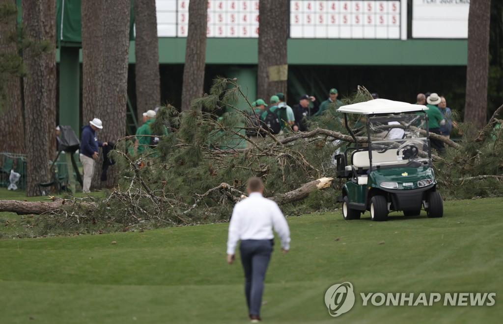 이날 오거스타 내셔널 골프클럽 내 소나무 세 그루가 쓰러질 정도로 강한 바람이 불었다.