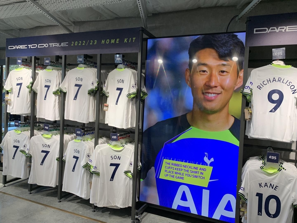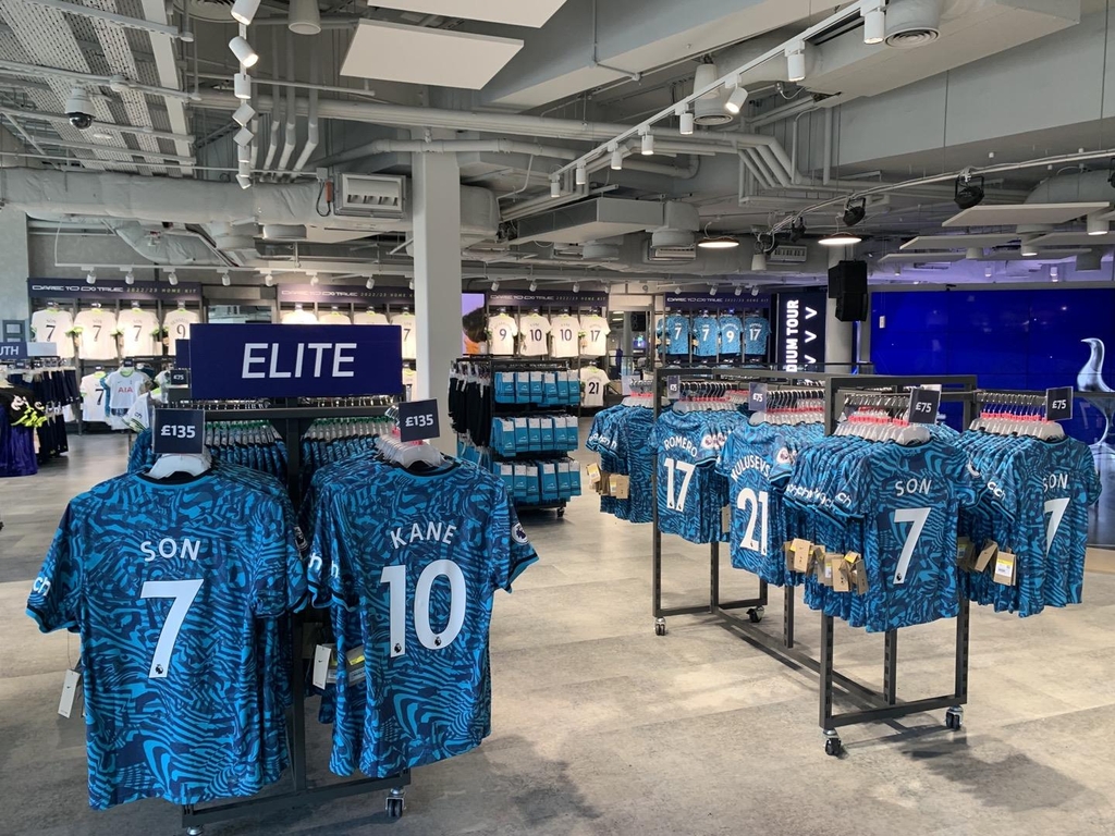 | ▲ 토트넘 홋스퍼 손흥민 유니폼 (런던=연합뉴스) 최윤정 특파원 = 4일(현지시간) 영국 런던 토트넘 홋스퍼 스타디움의 기념품 판매점 '토트넘 익스피리언스'에 손흥민 선수 유니폼이 걸려있다. 2022.11.13 merciel@yna.co.kr |