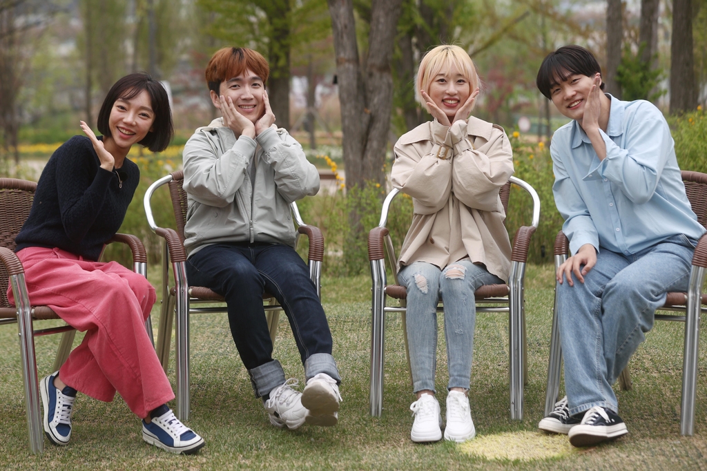 | ▲ EBS '세상을 비집고' 출연진 (서울=연합뉴스) 진연수 기자 = EBS '세상을 비집고' 출연진 신홍윤씨(왼쪽상단부터 시계방향으로), 박정인씨, 김나윤씨, 박현진씨가 지난 22일 서울 강서구 서울식물원에서 연합뉴스와 인터뷰를 앞두고 포즈를 취하고 있다. 2022.4.25 jin90@yna.co.kr |