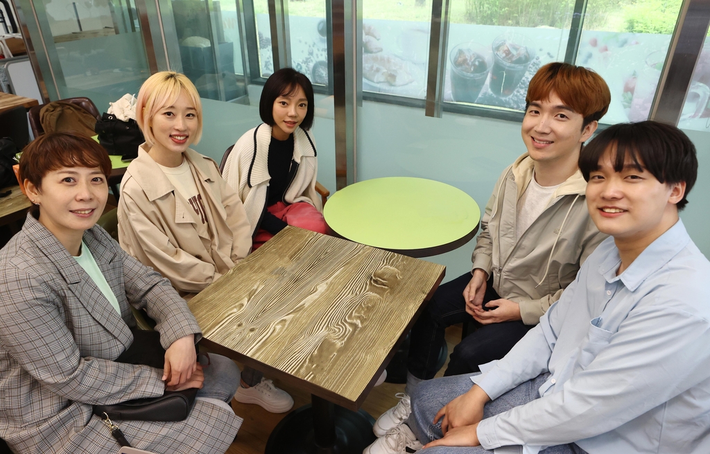 | ▲ EBS '세상을 비집고' 최복희 PD와 출연진 (서울=연합뉴스) 진연수 기자 = EBS '세상을 비집고' 최복희 PD(왼쪽부터), 박정인씨, 김나윤씨, 신홍윤씨, 박현진씨가 지난 22일 서울 강서구 서울식물원에서 연합뉴스와 인터뷰를 앞두고 포즈를 취하고 있다. 2022.4.25 jin90@yna.co.kr |
