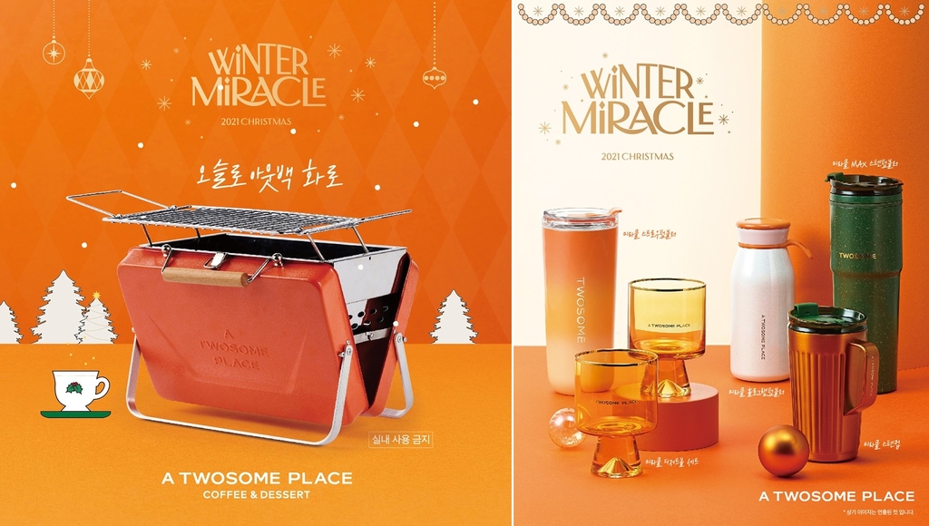 ▲ 투썸플레이스는 크리스마스 기획상품인 캠핑용 화로와 텀블러, 디저트 그릇을 출시했다. 최근의 생활 트렌드인 '캠핑'과 '홈파티'에 어울리며 크리스마스 분위기가 나도록 주황색과 초록색을 입혔다.
