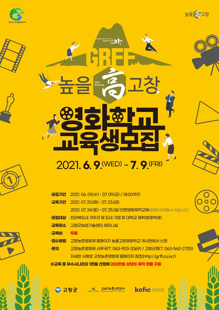 접수 방법은 고창농촌영화제 조직위 홈페이지(http://grff.co.kr)에서 신청 가능하며, 교육비는 전액 무료다.