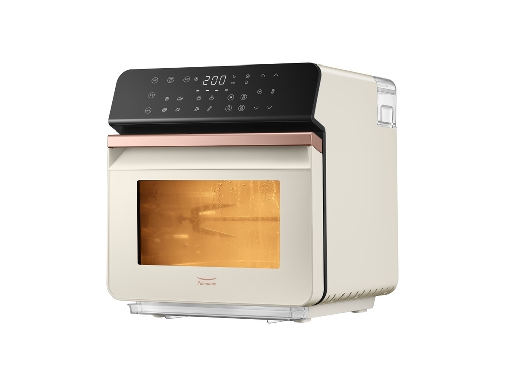 ▲ 풀무원건강생활은 오븐형 에어프라이어에 350도 회전 기능을 더한 '스팀쿡 에어프라이어 로티세리'를 출시했다. 사용자가 고기를 뒤집지 않아도 골고루 익혀지며 기름기까지 제거된다. 내부 기름때를 청소하는 '스팀 세척' 기능도 갖췄다.