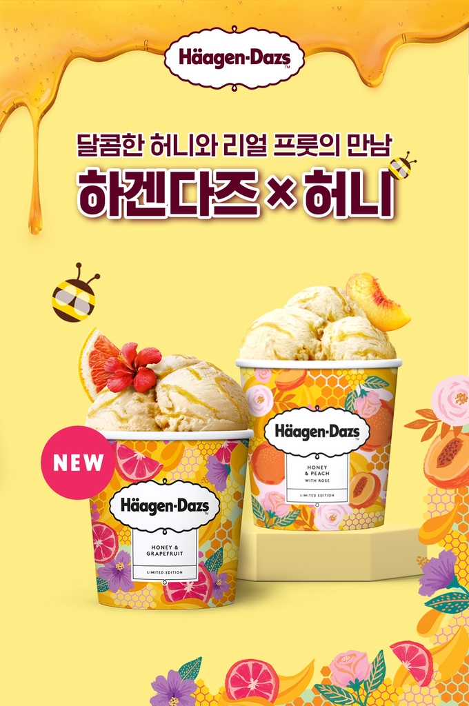 ▲ 아이스크림 브랜드 하겐다즈는 오는 14일부터 올해 봄 한정상품인 '허니&그레이프프루트'와 '허니&피치 위드 로즈'를 한 달간 선보인다. 각각 꿀과 자몽, 꿀과 복숭아 맛이 조화를 이룬 아이스크림이다.