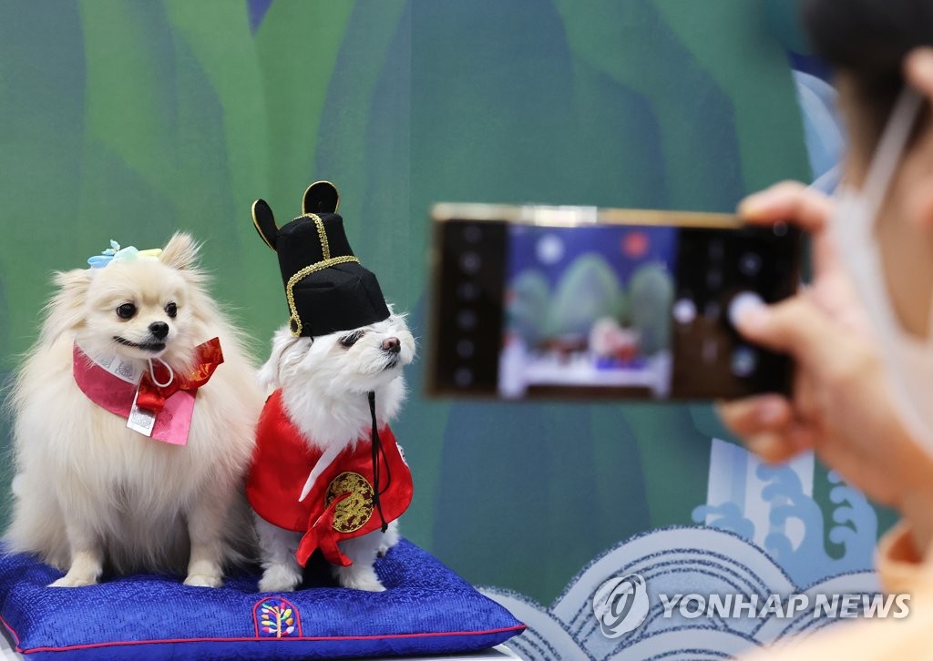 | ▲ '다정하게 한 컷' 지난 18일 오전 경기도 수원시 권선구 수원메쎄에서 열린 '케이펫페어'에서 관람객이 포토존에서 강아지 사진을 찍고 있다. [연합뉴스 자료사진] |