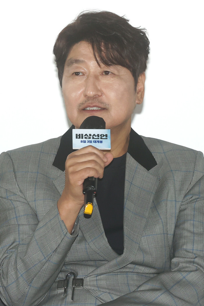 South Korean actor Song Kang-ho, who stars in the new movie "Emergency Declaration," attends a publicity event in Seoul on July 25, 2022. The movie will be released in South Korea on Aug. 3. (Yonhap)
