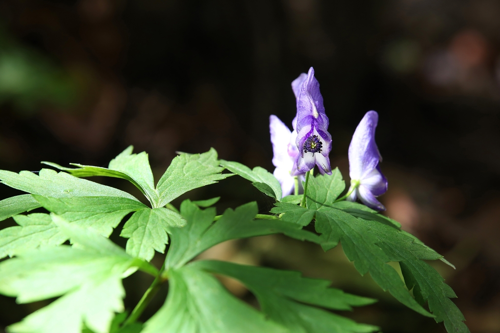 투구꽃은 앙증맞은 보라색 고깔 모양이었다. 가을에 고지대에서 흔히 볼 수 있는 이 꽃은 독성 때문에 옛날 사약 재료로 쓰였다.