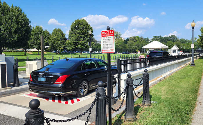 Vehicles carrying a South Korean trade delegation, comprising Finance Minister Koo Yun-cheol, Industry Minister Kim Jung-kwan and Trade Minister Yeo Han-koo, drive past the entrance to the West Wing of the White House in Washington, D.C., on July 30, 2025. U.S. President Donald Trump said the same day that he will meet the delegation in the afternoon to listen to their "offer to buy down" the proposed 25 percent "reciprocal" tariffs. (Yonhap).