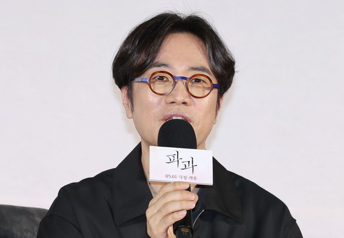 South Korean director Min Kyu-dong answers questions for the new movie "The Old Woman With The Knife," during a publicity event in Seoul on March 27, 2025, to promote the movie, set to hit local screens in South Korea on May 1. (PHOTO NOT FOR SALE) (Yonhap)