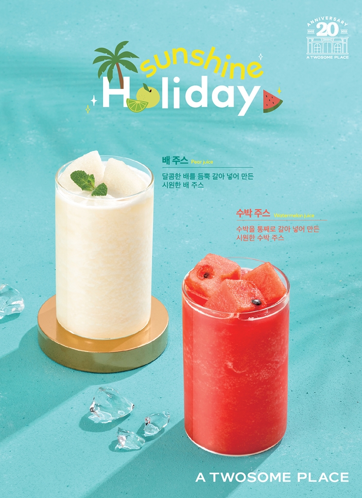 ▲ 투썸플레이스는 국내산 수박과 배를 넣은 주스 2종을 여름 시즌 한정으로 출시했다. 과일 본연의 풍미가 느껴지도록 각 메뉴에 한가지 과일만 활용했다.