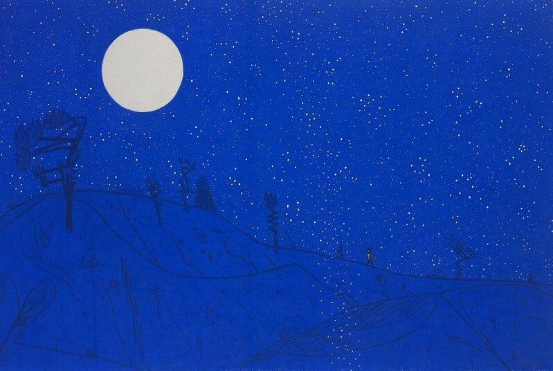 보름달이 뜬 푸른 밤하늘을 배경으로 어두운 길을 홀로 걷는 사람을 그린 '밤길' 연작은 아무것도 없는 어두운 길을 걸어갈 때 내 뒤를 조용히 따라오는 듯한 달처럼 용기와 희망을 주는 존재의 소중함을 생각하게 한다.