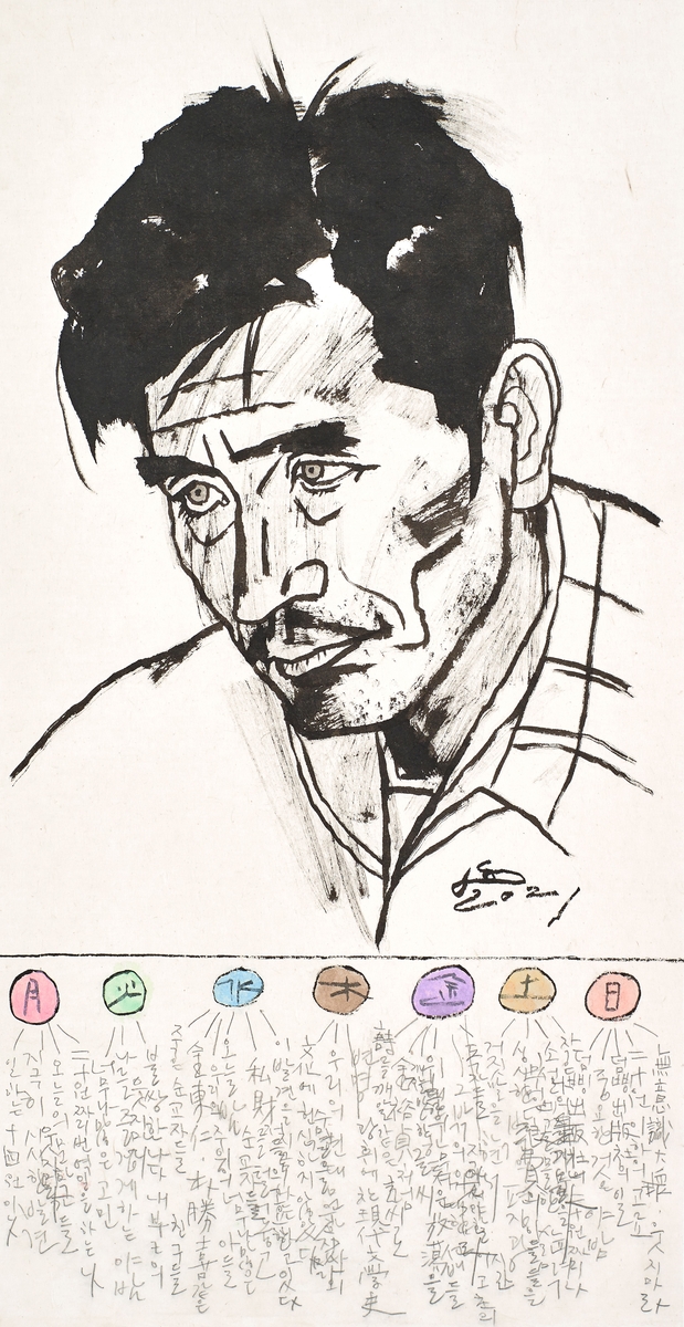 | ▲ 김선두, '아름다운 시절-김수영' 2021, 장지에 먹, 분채[학고재 제공. 재판매 및 DB 금지] |