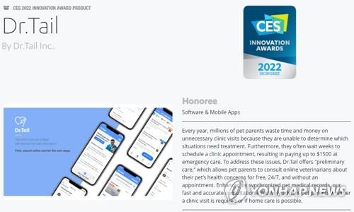 | ▲ 올 초 열린 세계 최대 가전·IT 전시회 'CES' 혁신상을 받은 닥터테일 서비스 소개 내용. [CES 홈페이지] |