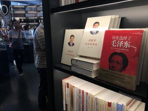 | ▲ 서점의 마오쩌둥·시진핑 도서 [상하이=연합뉴스 자료사진] 차대운 특파원 = 2019년 9월 8일 중국 상하이 최고층 빌딩인 상하이타워 내 서점의 정치 코너에 마오쩌둥 전 국가주석과 시진핑 국가주석 관련 서적이 놓여 있다. 2019.9.9 cha@yna.co.kr |