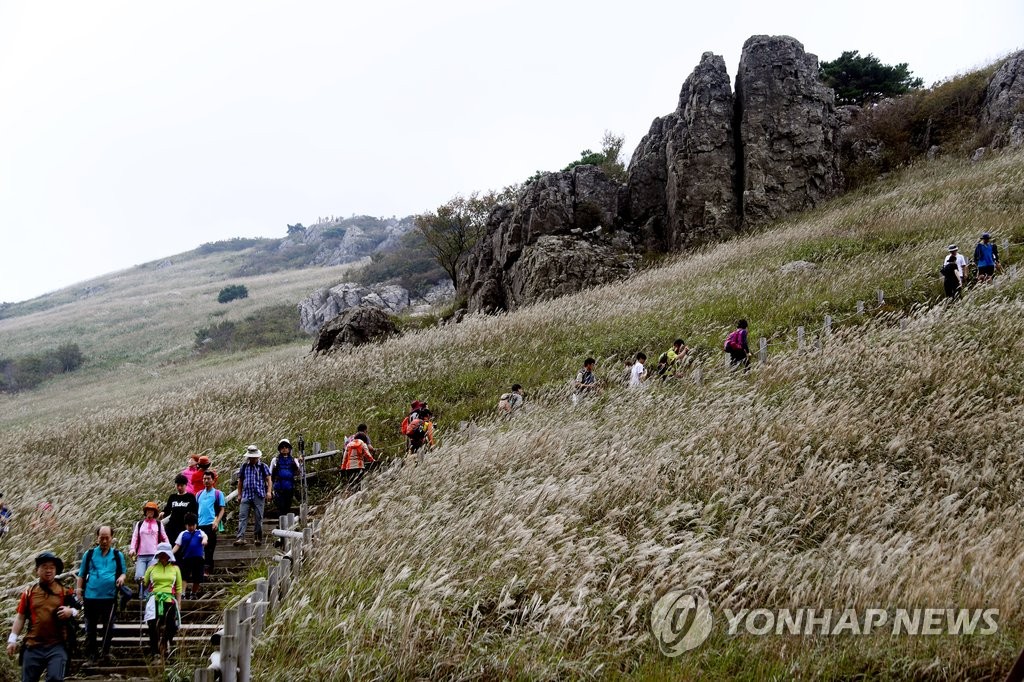 ▲ 억새 핀 영남알프스 오르는 등산객들 [연합뉴스 자료사진]