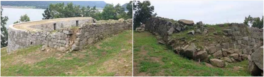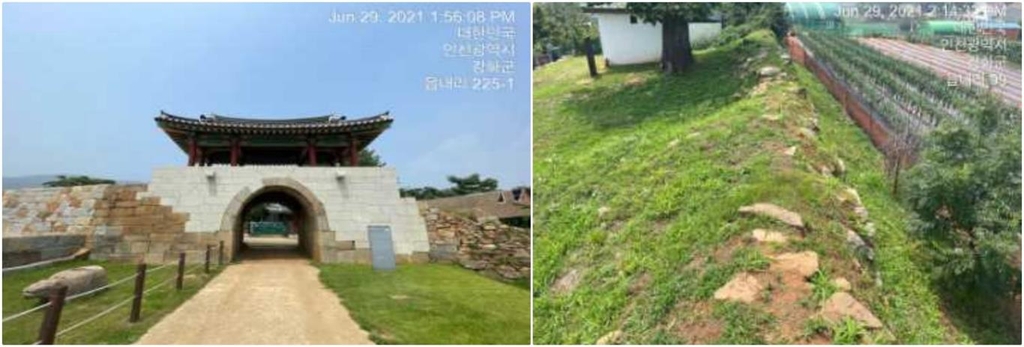 | ▲ 강화 건평돈대(왼쪽)와 붕괴된 북동측 성벽 [인천시 제공, 재판매 및 DB 금지] |