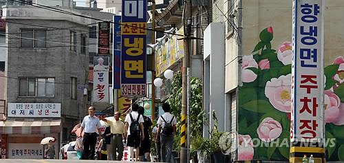 그마저도 냉면집 사이 사이엔 폐업해 셔터를 내린 가게, 중국집, 한식 뷔페 집 등이 자리 잡아 냉면 거리라는 말을 무색게 했다.