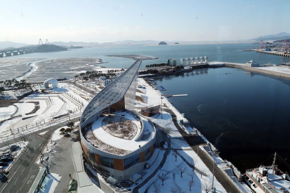서해안 조약돌 모양을 형상화한 이 시설 중간에는 종 모양이 표현됐다.