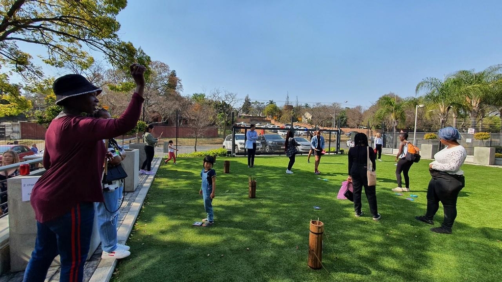 | ▲ 투호 놀이와 딱지치기 (프리토리아=연합뉴스) 김성진 특파원 = 27일(현지시간) '한류 축제 2022' 참가자가 투호 놀이와 딱지치기를 하고 있다. 2022.8.27 sungjin@yna.co.kr |