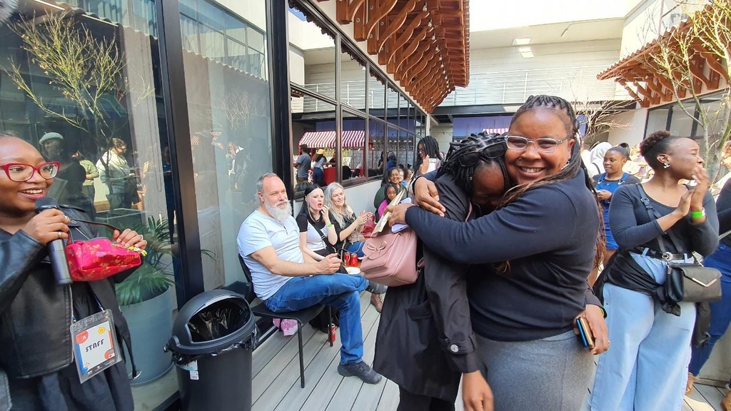 | ▲ '그리도 좋을까' 행운상으로 K-팝 앨범에 뽑히자 포옹하는 모녀 (프리토리아=연합뉴스) 김성진 특파원 = 27일(현지시간) 주남아공 문화원에서 열린 한류 축제 중 행운상 뽑기에서 K-팝 앨범을 받게 되자 모녀가 부둥켜안고 기뻐하고 있다. 2022.8.27 sungjin@yna.co.kr |
