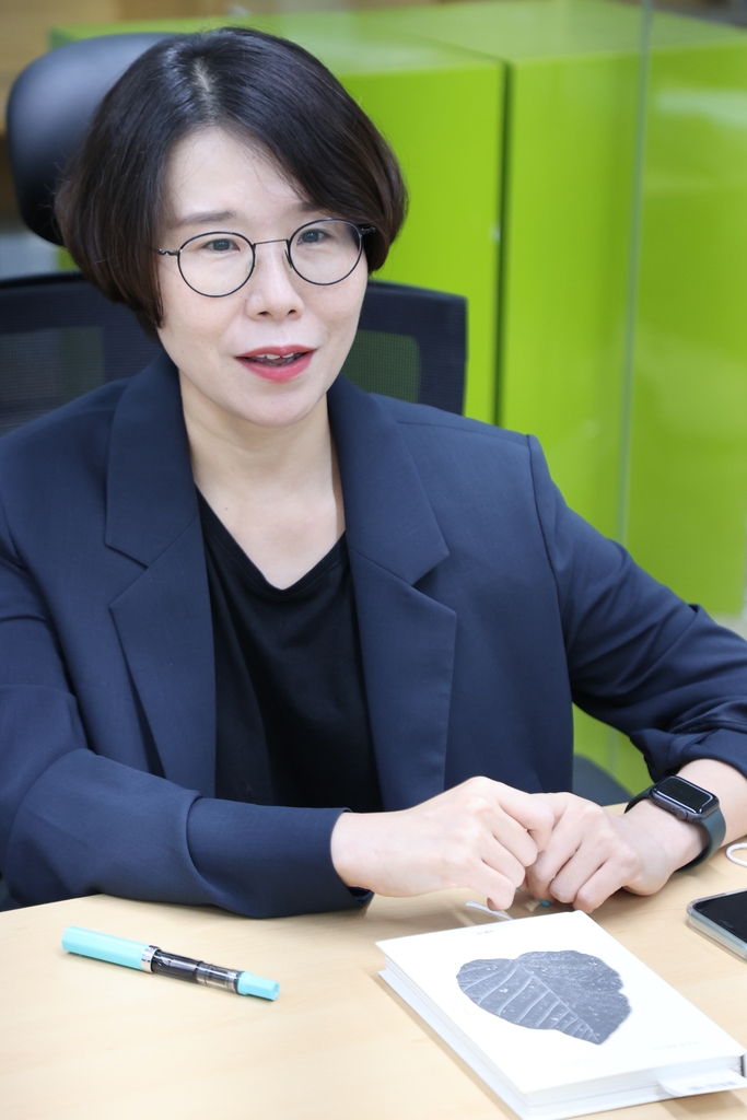 | ▲ 소설가로 변신한 박연준 시인 (서울=연합뉴스) 류효림 기자 = 첫 장편소설 '여름과 루비'를 출간한 박연준 시인이 지난 13일 서울 마포구 서교동 은행나무 출판사에서 연합뉴스와 인터뷰를 하고 있다. 2022.7.14 |