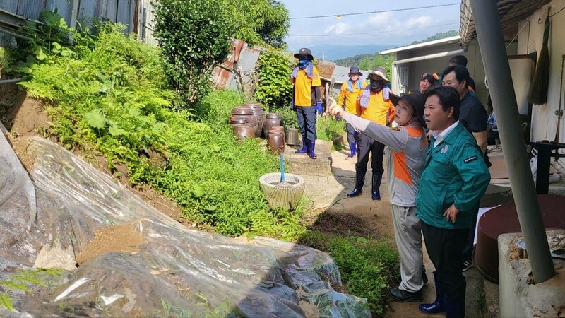 | ▲ 수해 현장 살피는 박정현 부여군수(오른쪽 끝) [충남 부여군 제공. 재판매 및 DB 금지] |
