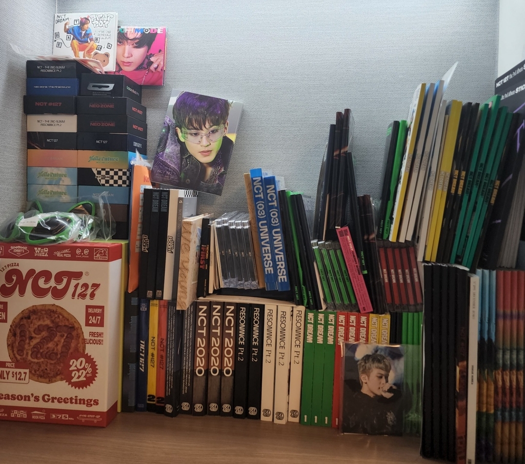 | ▲ 한 아이돌 그룹의 똑같은 음반이 여러 장씩 있는 김씨의 책상 [독자 김모(26)씨 제공. 재판매 및 DB 금지] |