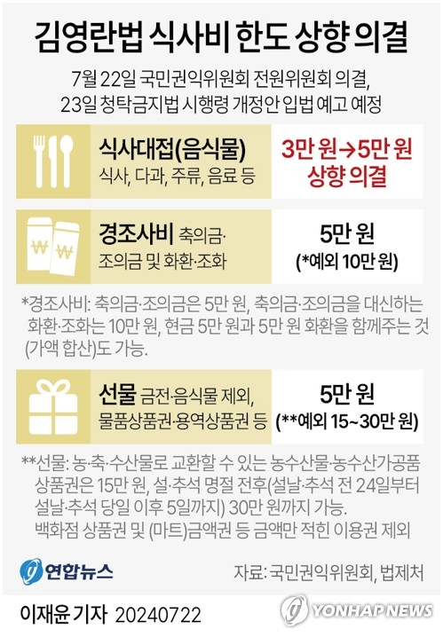 청탁금지법상 식사비, 이르면 추석 전 3만→5만원으로 오른다
