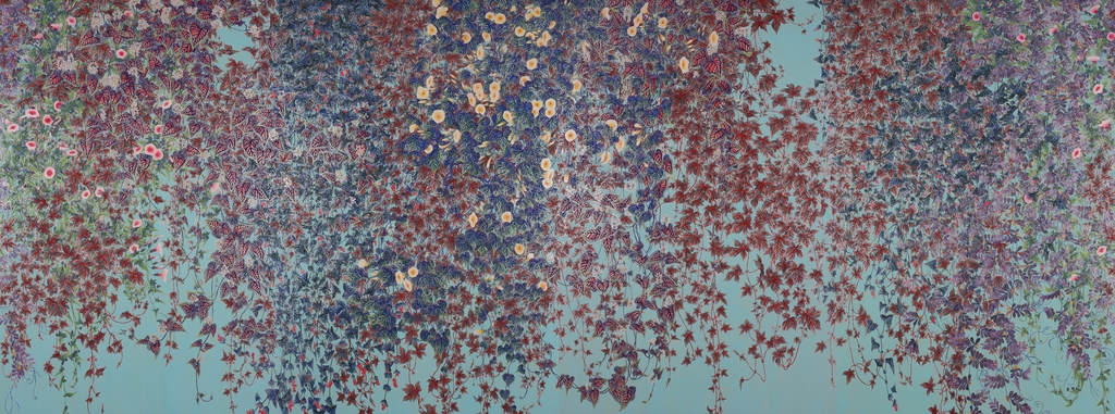 한국화를 작업하는 성민우는 자연에서 본 다양한 색을 동양화의 채색과 금분, 은분을 이용해 화면 가득히 풀어낸다.