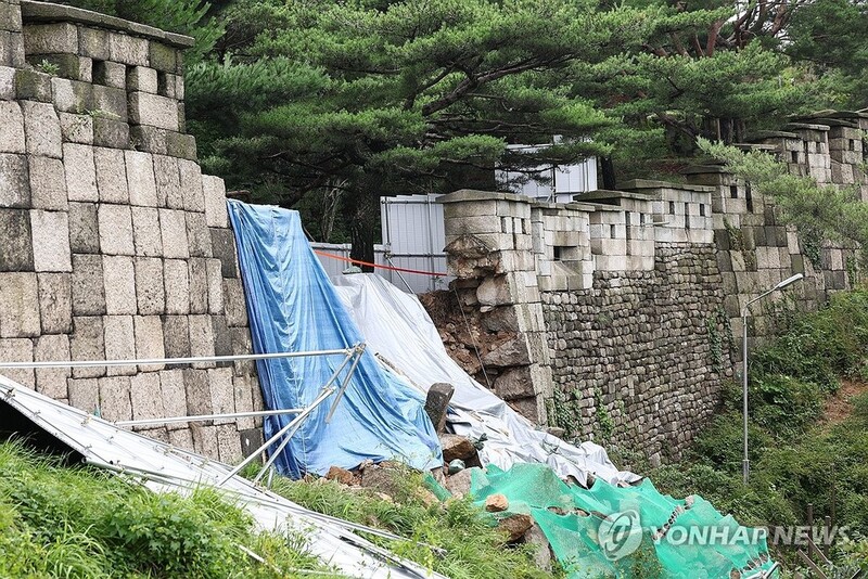 (서울=연합뉴스) 김정진 김예나 기자 = 연일 이어지는 장맛비에 유네스코(UNESCO) 세계유산 등재를 준비하던 서울 한양도성이 피해를 봤다.