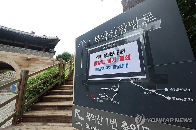 국가유산청 관계자는 "현재 창의문에서 청운대로 이어지는 탐방로를 출입 통제하고 있으며 추가 피해가 없도록 순찰을 강화하고 있다"고 밝혔다.