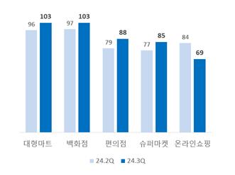 대형마트(103)와 백화점(103)이 기준치(100)를 웃돌며 전체 지수 상승을 견인했다.
