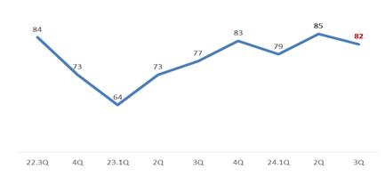 편의점(79→88)도 전 분기 대비 전망치가 개선됐다. 3분기가 아이스크림, 음료, 주류 등이 잘 팔리는 성수기인 데다가 파리올림픽 특수에 대한 기대감이 큰 것으로 조사됐다.
