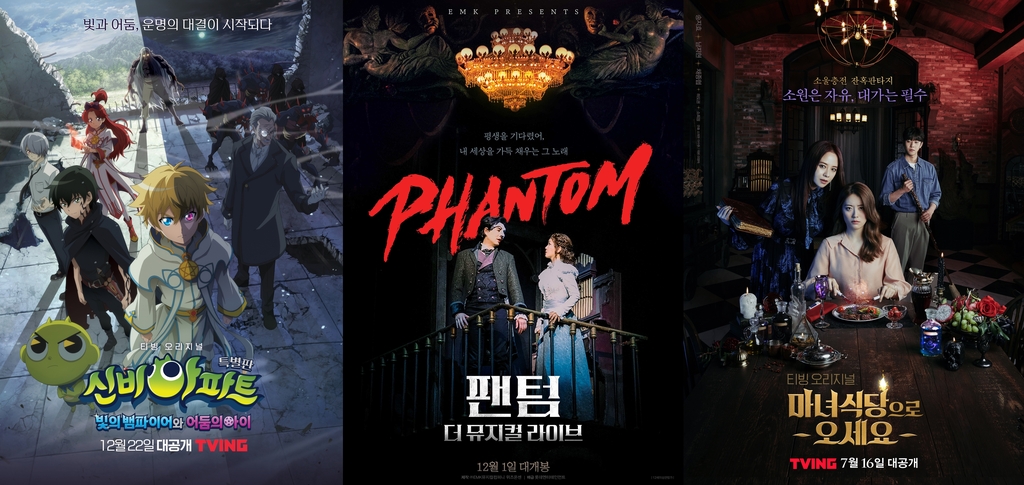 ▲ 티빙 크리스마스 추천작 (왼쪽부터) '신비아파트 특별판: 빛의 뱀파이어와 어둠의 아이', '팬텀: 더 뮤지컬 라이브', '마녀식당으로 오세요'[티빙 제공. 재판매 및 DB 금지]