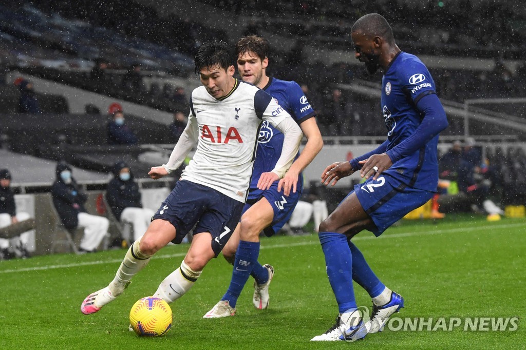 많은 비가 내리는 가운데 손흥민을 왼쪽 날개로 투입한 4-2-3-1 전술로 나선 토트넘은 전반 초반부터 첼시의 강한 공세에 좀처럼 득점 기회를 만들지 못했다.
