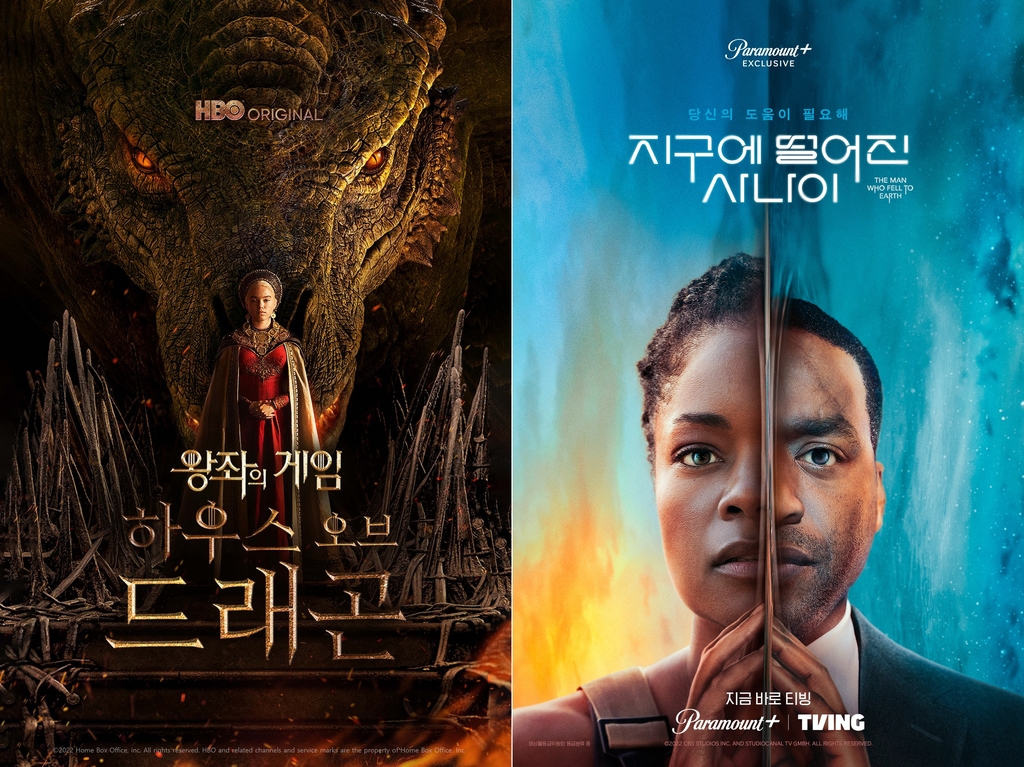 | ▲ 왼쪽부터 '하우스 오브 드래곤'·'지구에 떨어진 사나이' 포스터 [웨이브·티빙 제공. 재판매 및 DB 금지] |