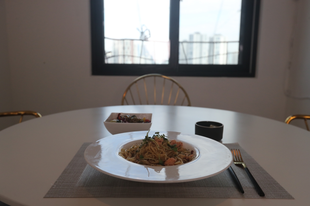 | ▲ 시식 공간에서 즐기는 명란 파스타 [촬영 박성제] |