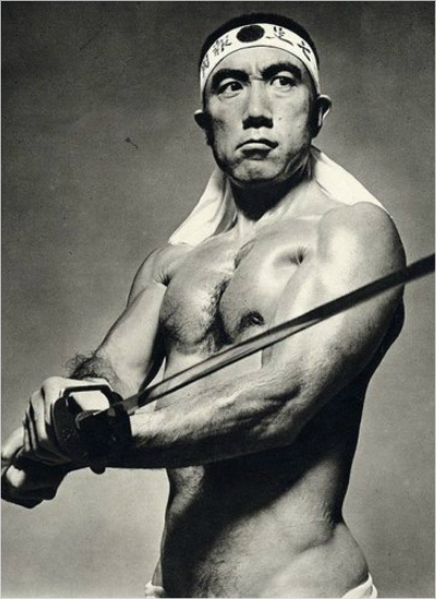 | ▲ 일본도를 든 미시마 유키오. 그는 자신의 엽기적인 모습을 담은 사진집을 펴내 '문단의 이단아'라는 평을 얻기도 했다. [출처 위키피디아] |