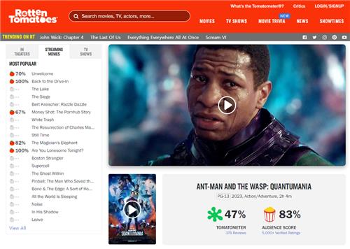 | ▲ 영화 '앤트맨과 와스프: 퀀텀매니아' 로튼 토마토 평점 [로튼 토마토 홈페이지 캡처. 재판매 및 DB 금지] |