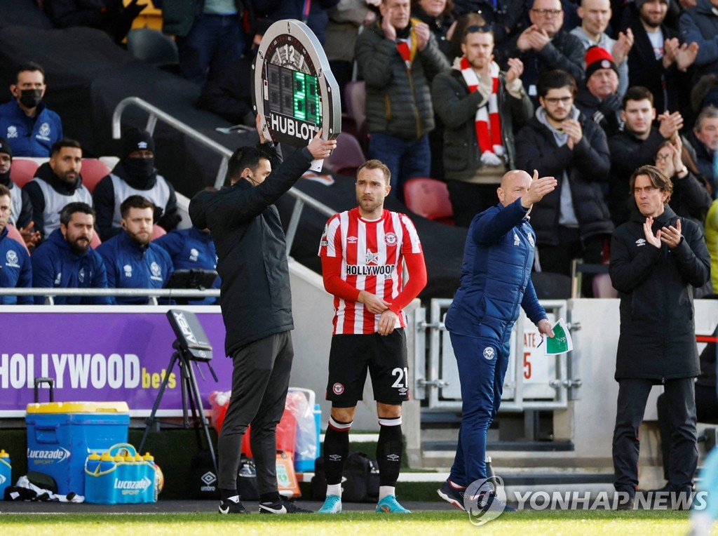 후반 시작 후 7분 만에 그라운드에 모습을 드러낸 에릭센은 경기가 끝날 때까지 뛰었고, 전반 11분에 한 명이 퇴장당한 브렌트퍼드는 0-2로 졌다.
